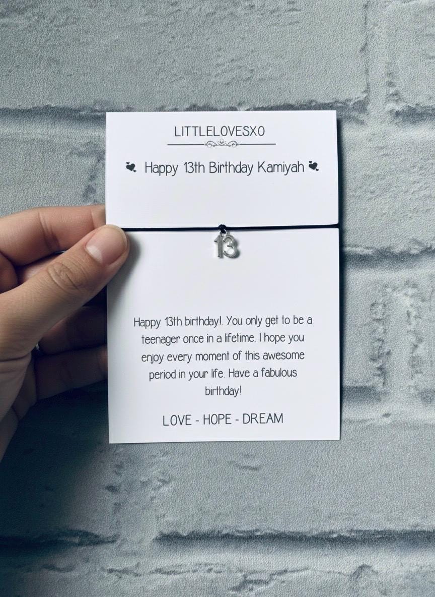 This card can be personalised with a name! So please leave a name during the checkout process in the “note to seller” section. If no name is left, it will just be sent as “Happy 13th birthday”