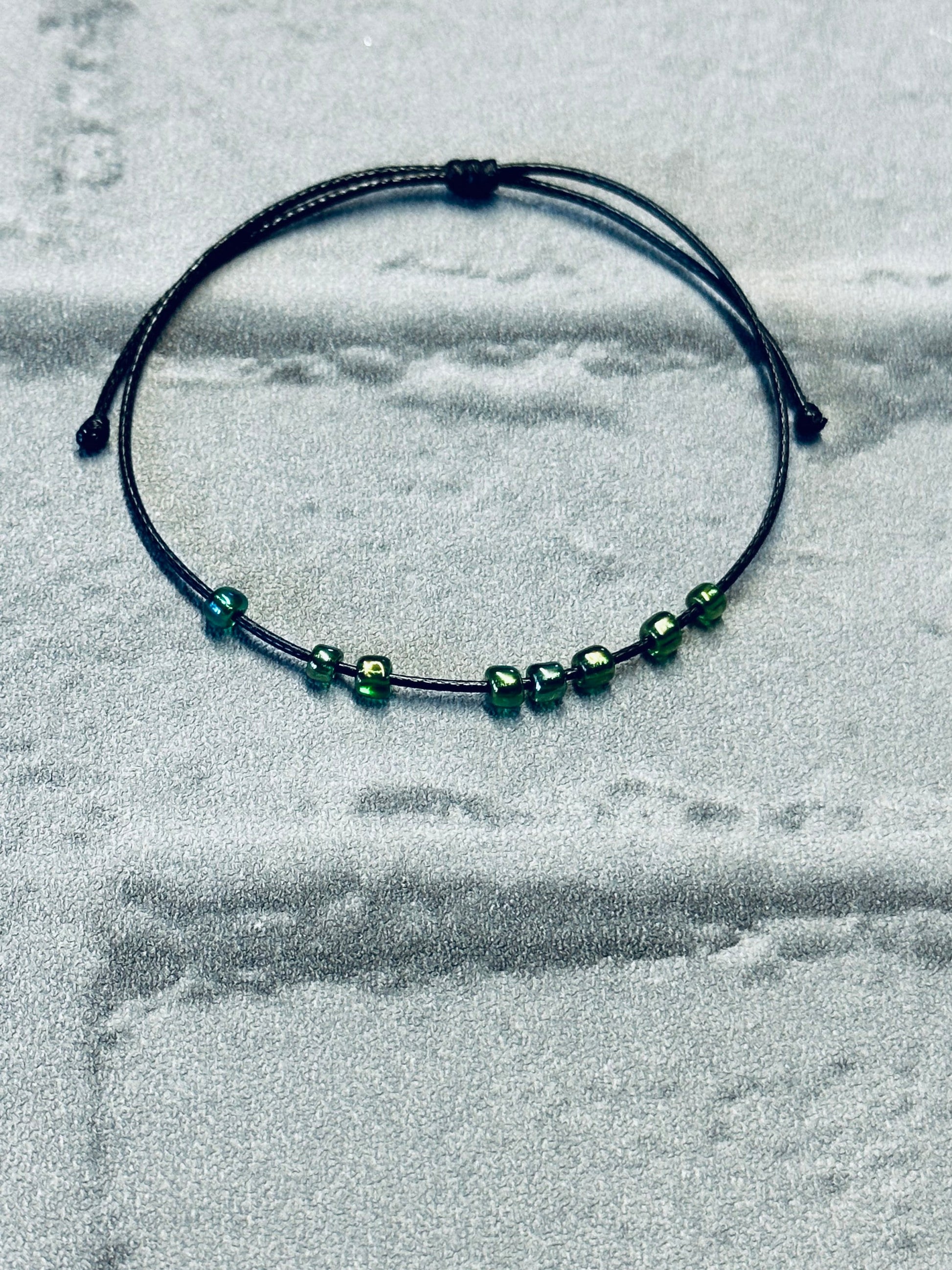 Adjustable Fidget Bracelet: Black String with Green Beads