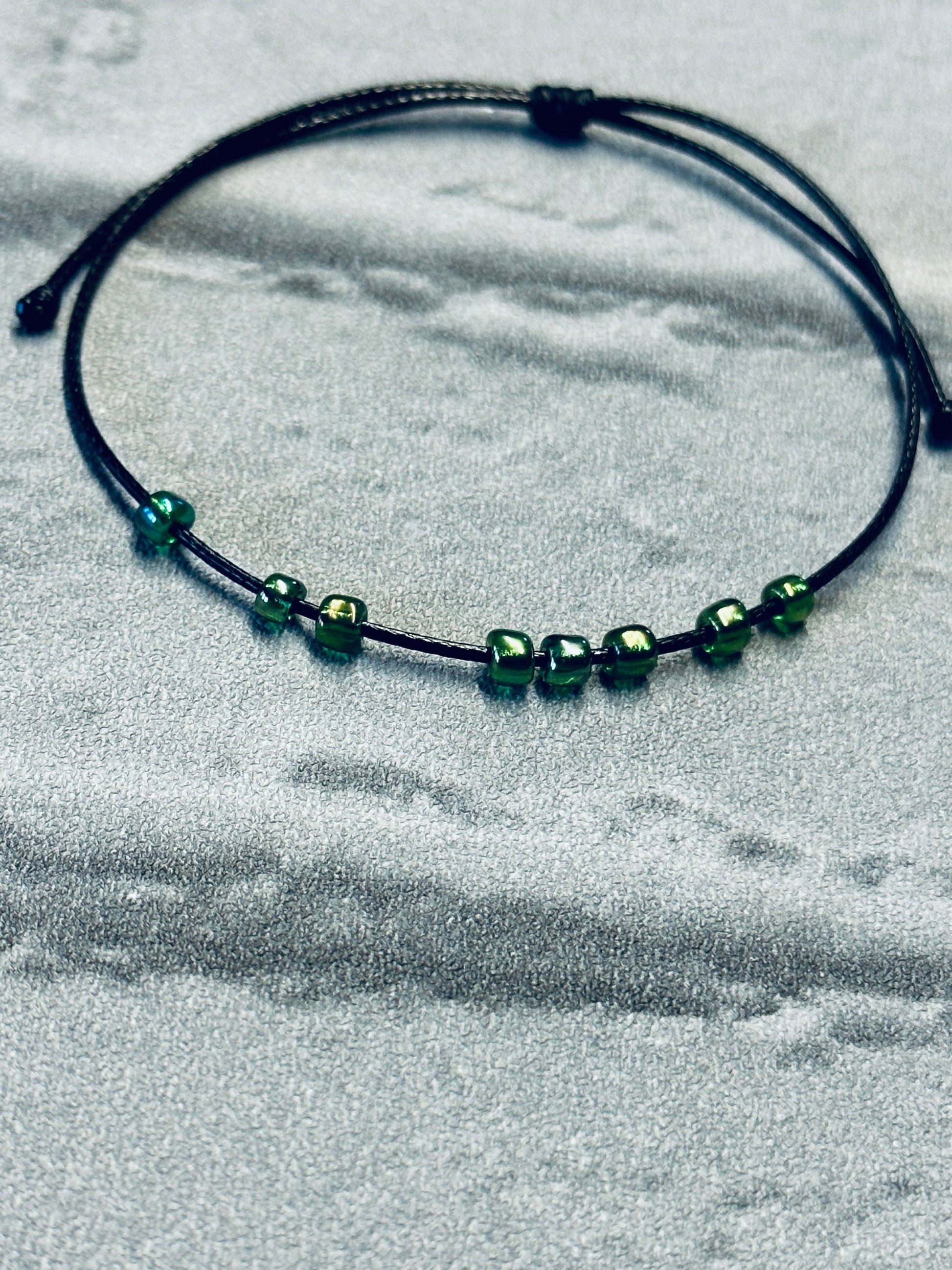 Crafted with 8 smooth 4mm green beads on an adjustable black waxed cord, this bracelet is as stylish as it is supportive. Whether you're at your desk, in class, or on the go, this discreet fidget accessory helps ground your thoughts and keep your fingers focused π