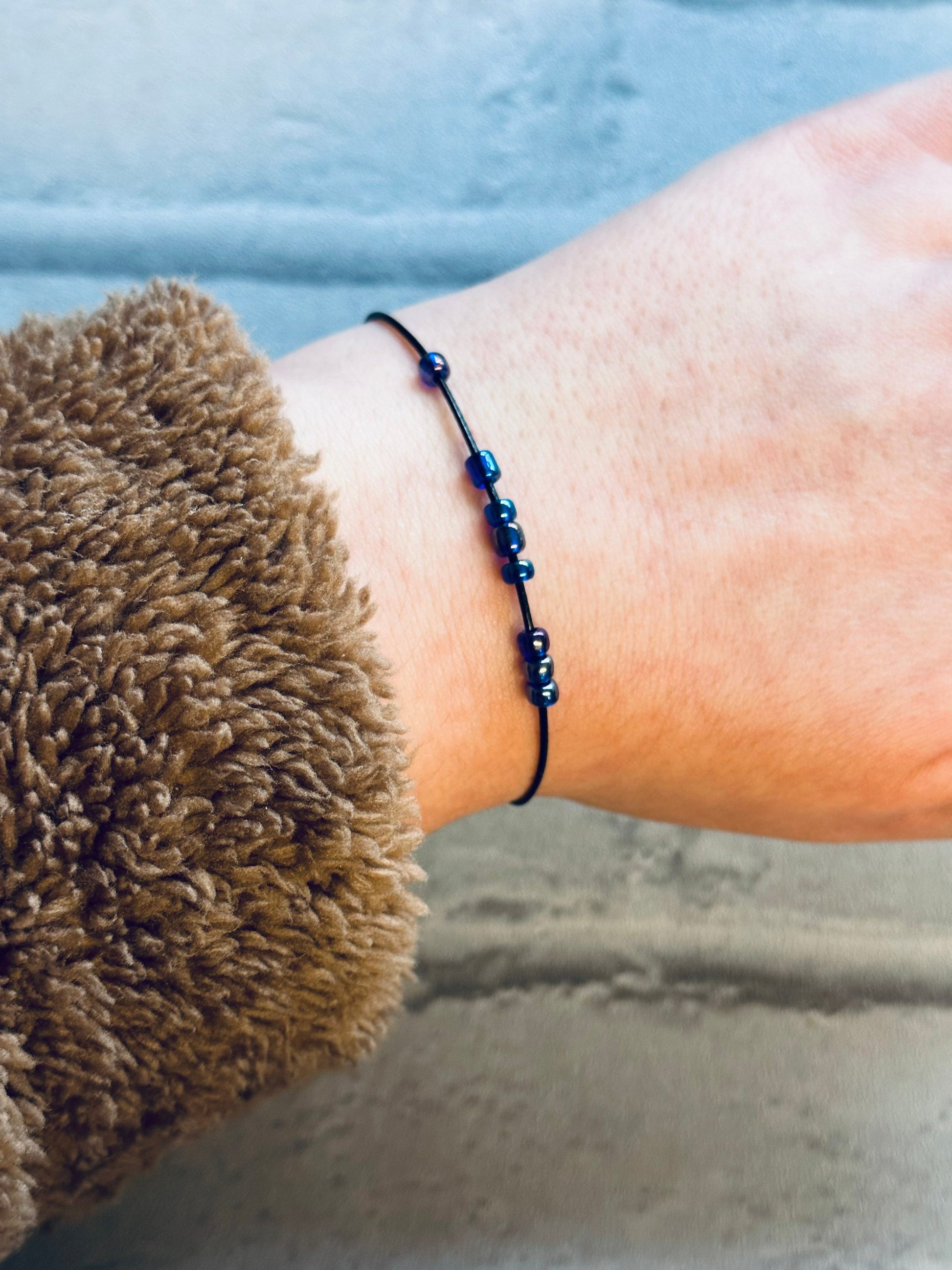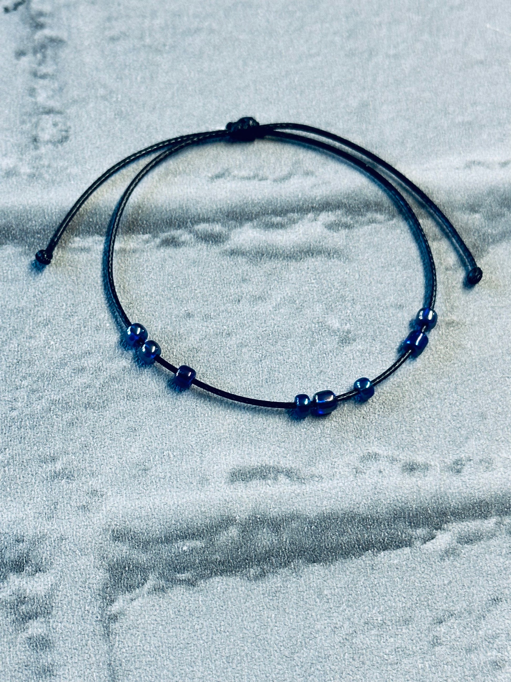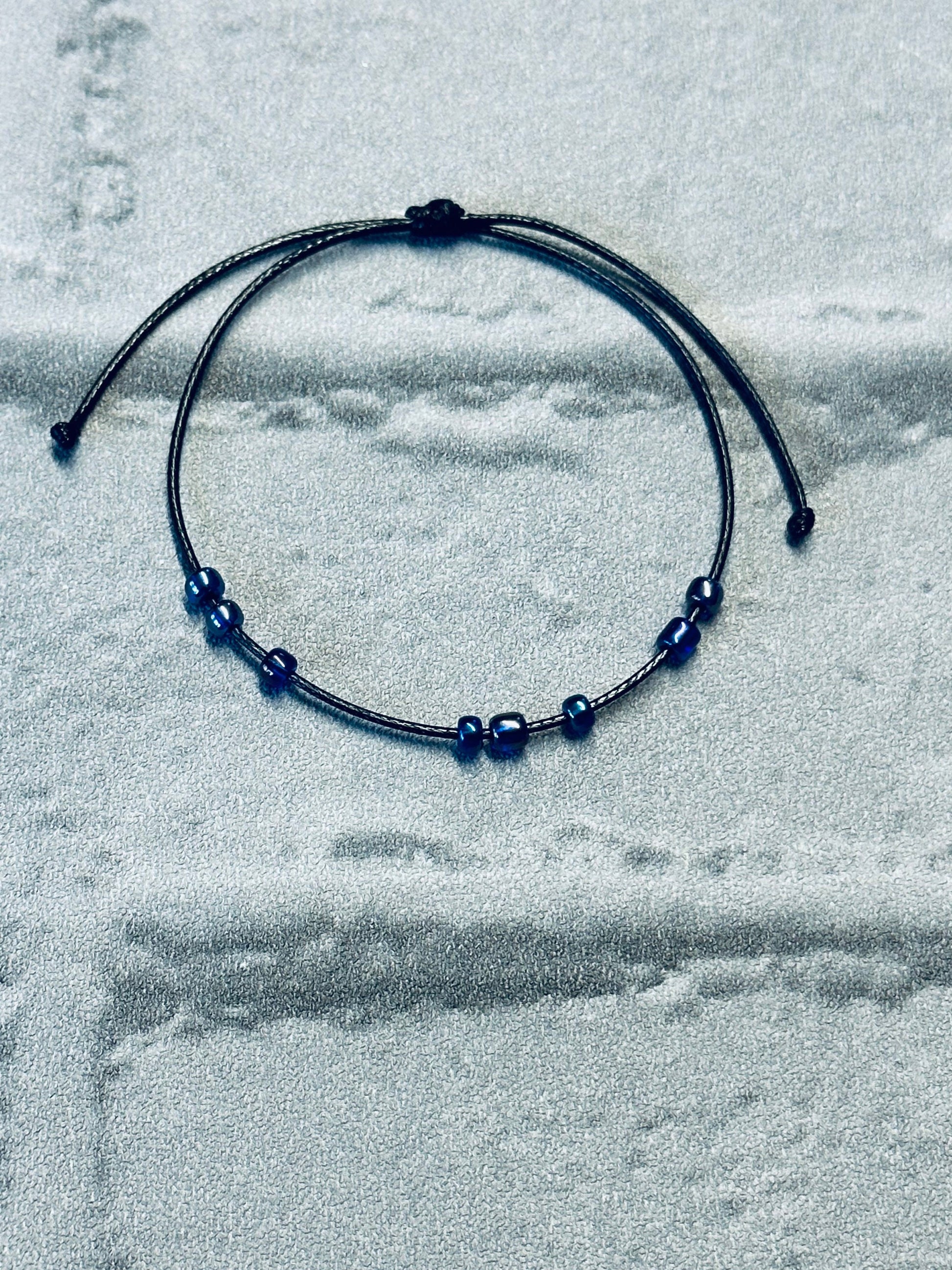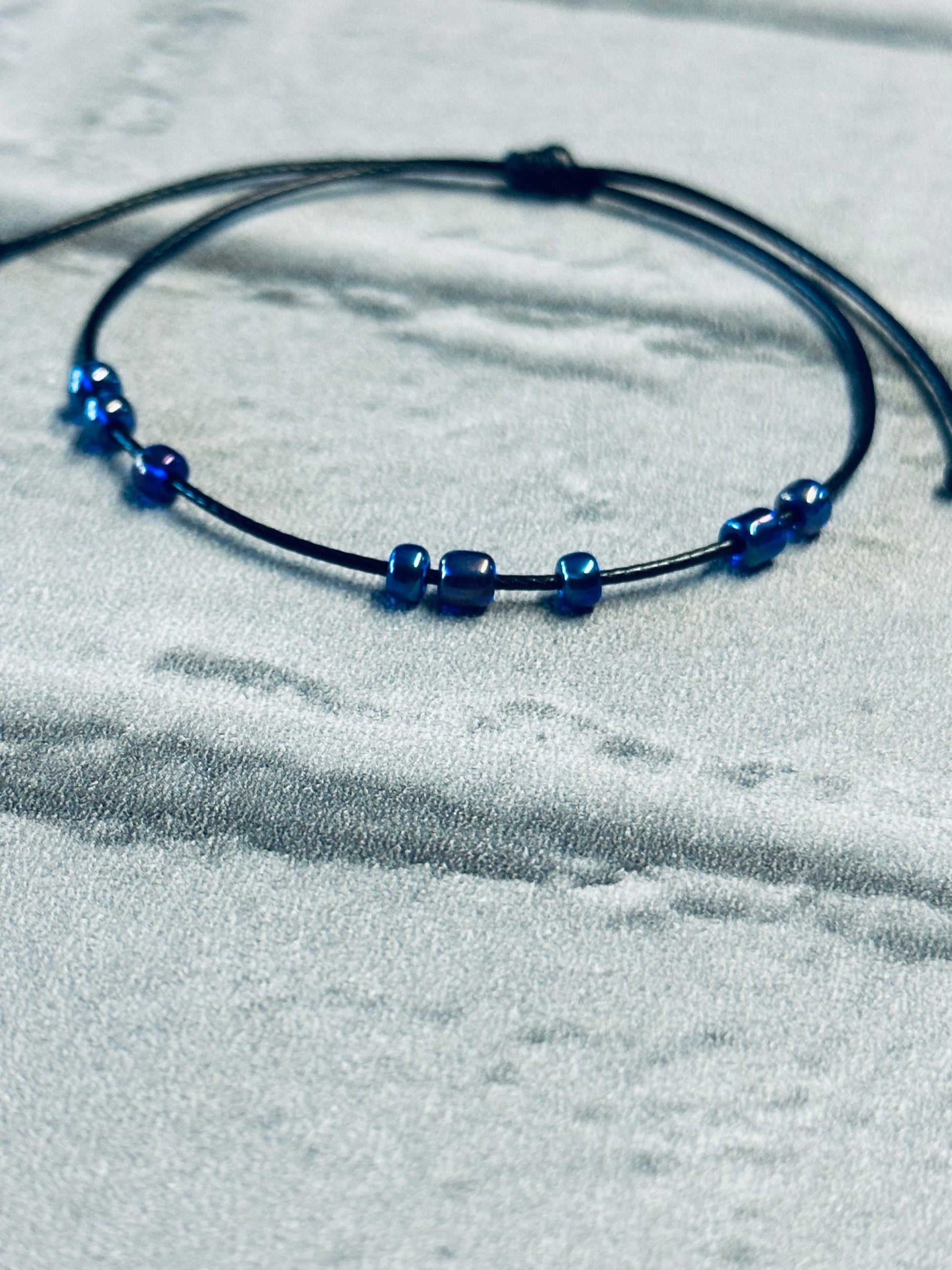 This bracelet features 8 smooth, 4mm blue beads strung on a durable, adjustable waxed cord. The cool blue tones are soothing to the eye and the fingers, making it the perfect calming companion for work, school, or just chilling out π§ββοΈπ