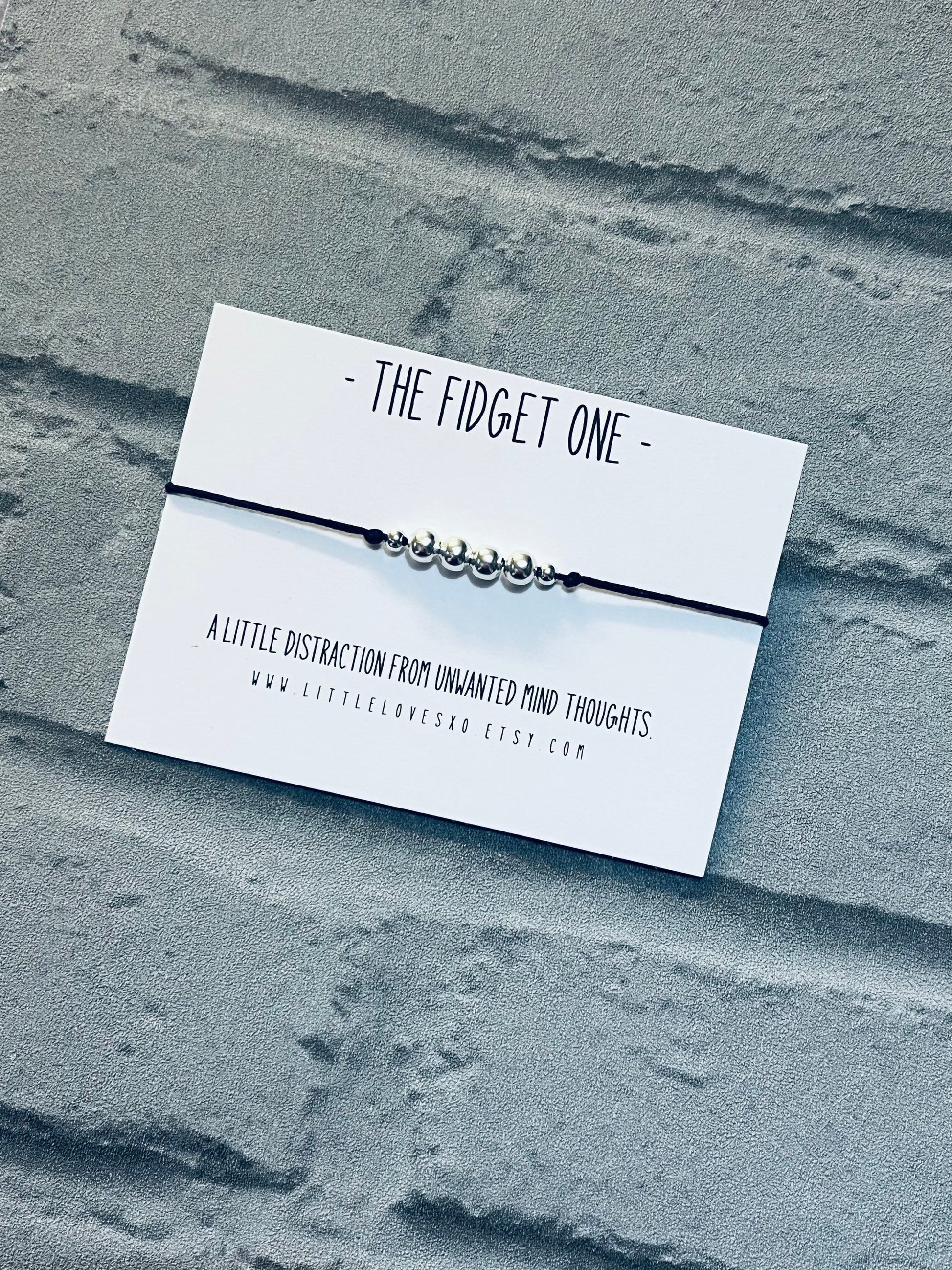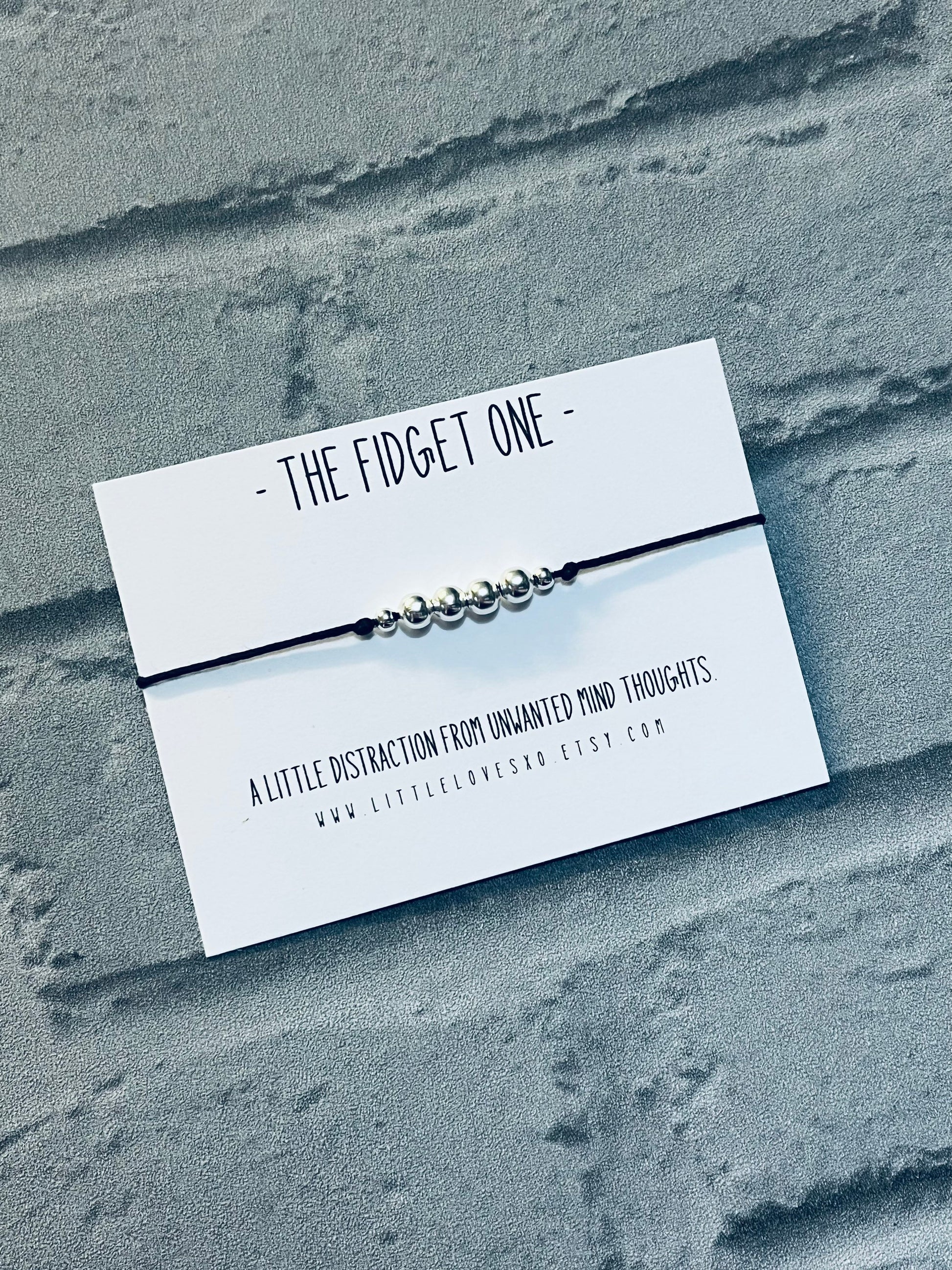 A sleek, minimalist string bracelet in classic black, featuring 4 silver-plated 6mm beads and 2 smaller 4mm beads β perfect for discreet fidgeting anytime, anywhere. Whether you're stuck in a meeting, on the bus, or just feeling overwhelmed at home, this bracelet gives your hands something to do while your mind finds its peace π§ ποΈ