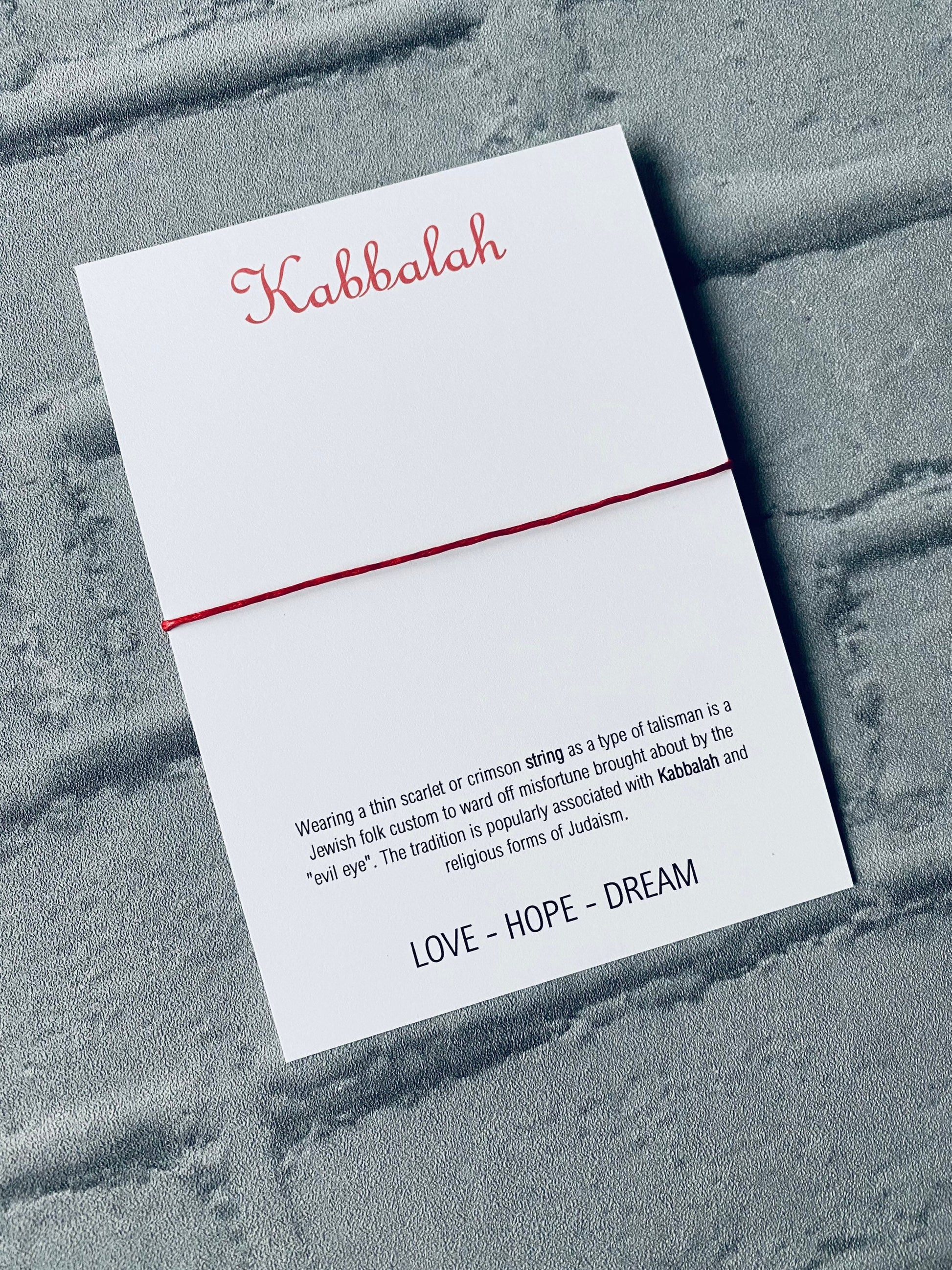 The red string bracelet is traditionally worn on the left wrist, the receiving side of the body and soul. It’s said to ward off negativity and invite blessings and protection from the “evil eye.”