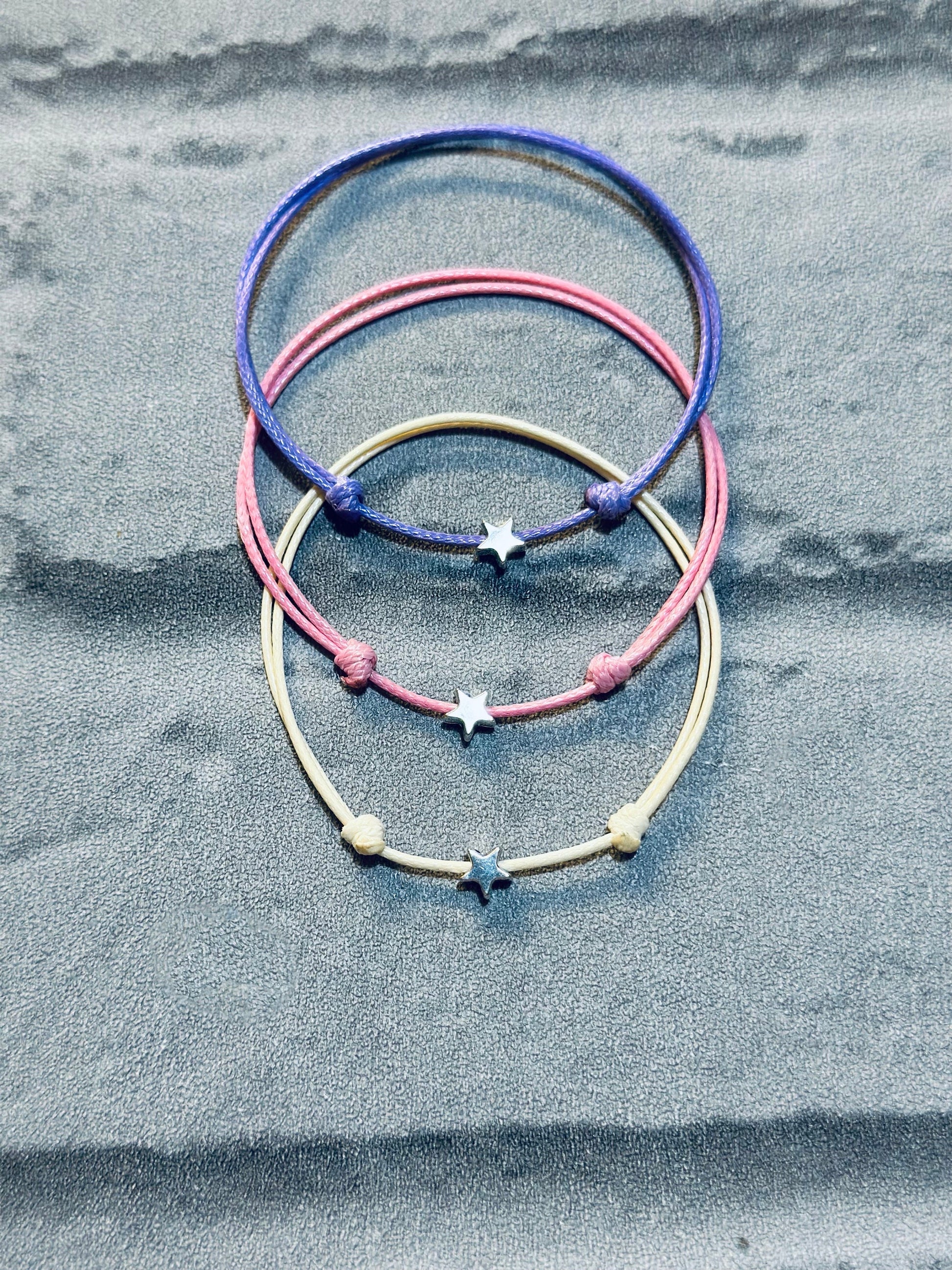 Adjustable Waxed Cord Bracelet Set: Silver Star Charm Friendship Anklet