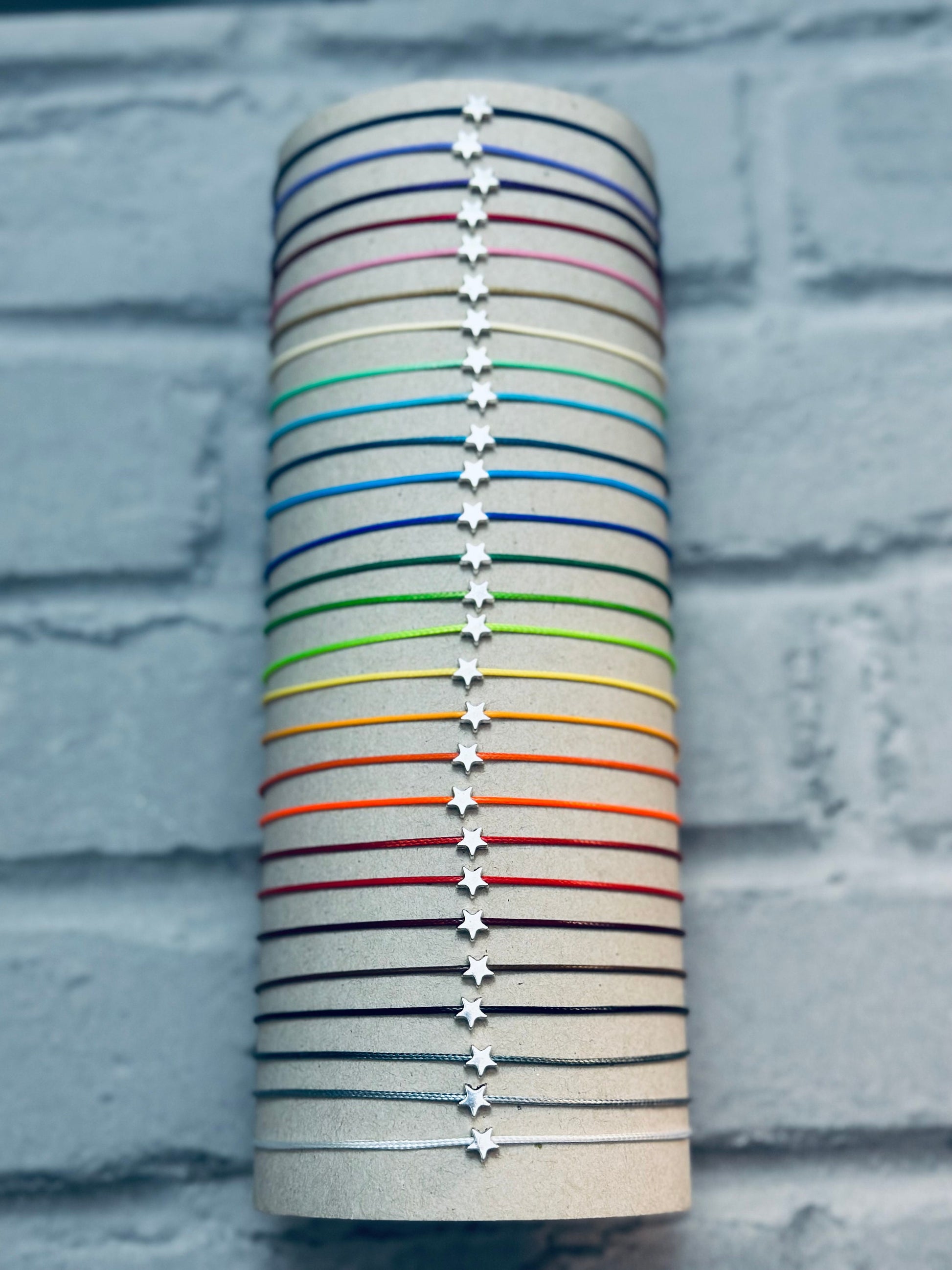 A simple waxed cord fully adjustable single bracelet in a wide selection of colours.