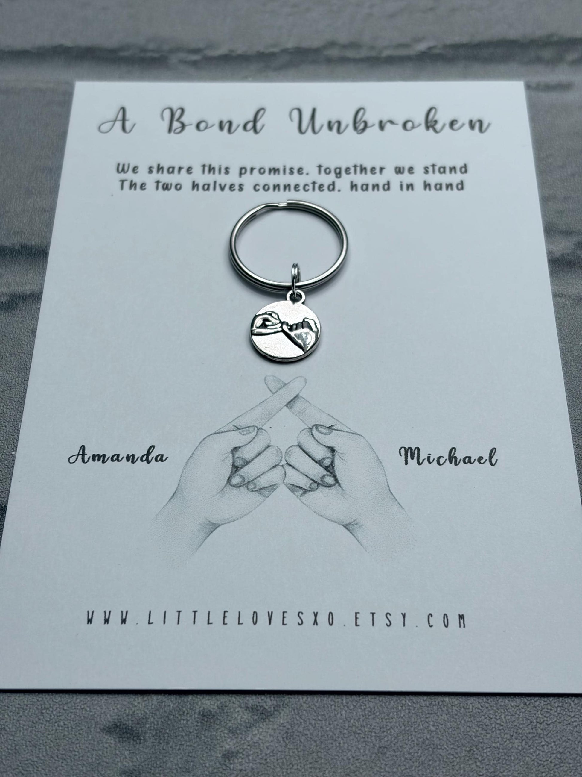 This beautifully detailed pinky promise keyring is more than just an accessory - it’s a reminder that no matter the distance, your bond remains unbroken.