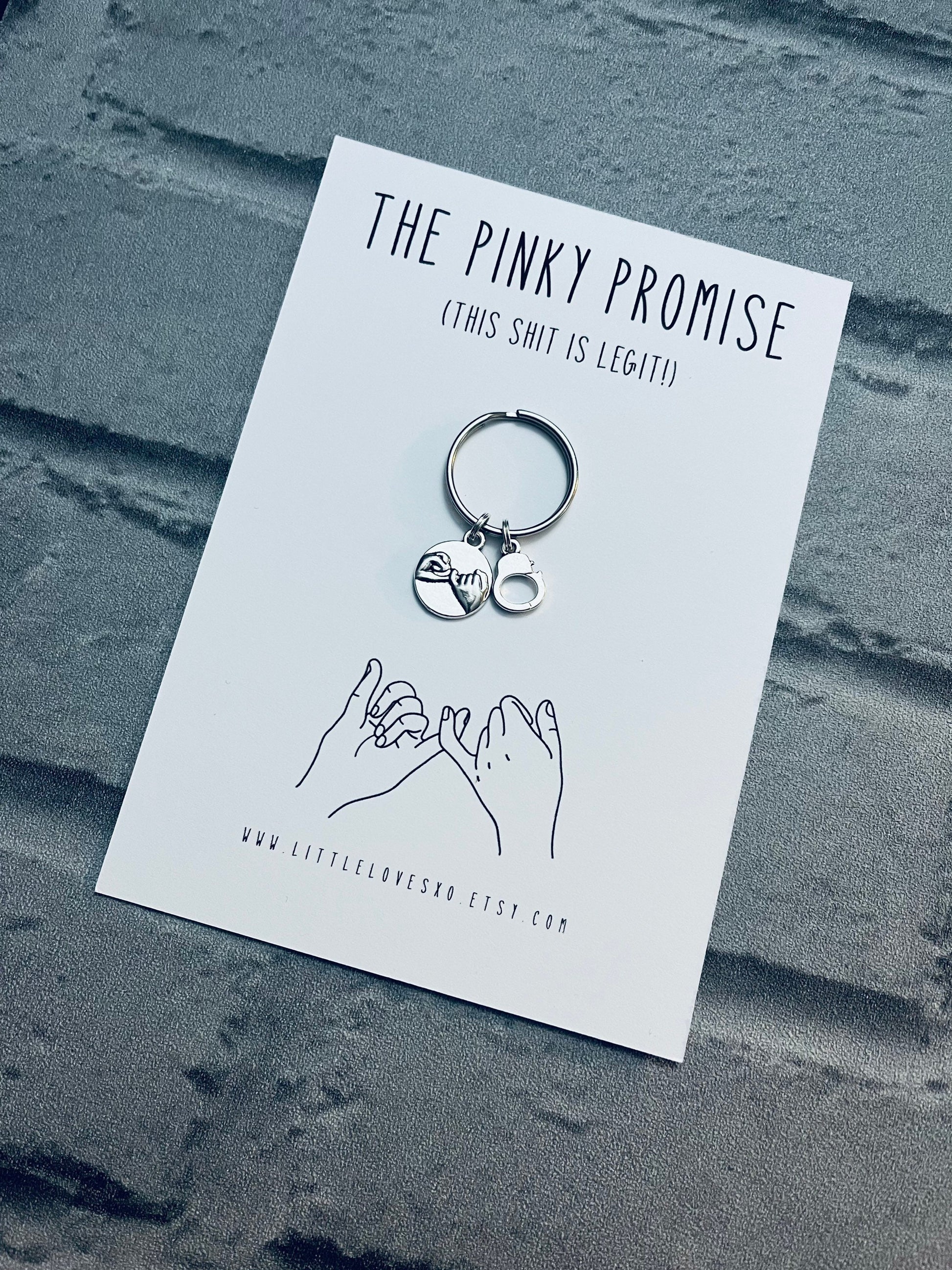Looking for a heartfelt, simple gift that speaks volumes without saying too much? Meet your new favorite keepsake: the Pinky Promise Keyring. Crafted with love and designed to remind your partner or loved one just how much they mean to you every day.