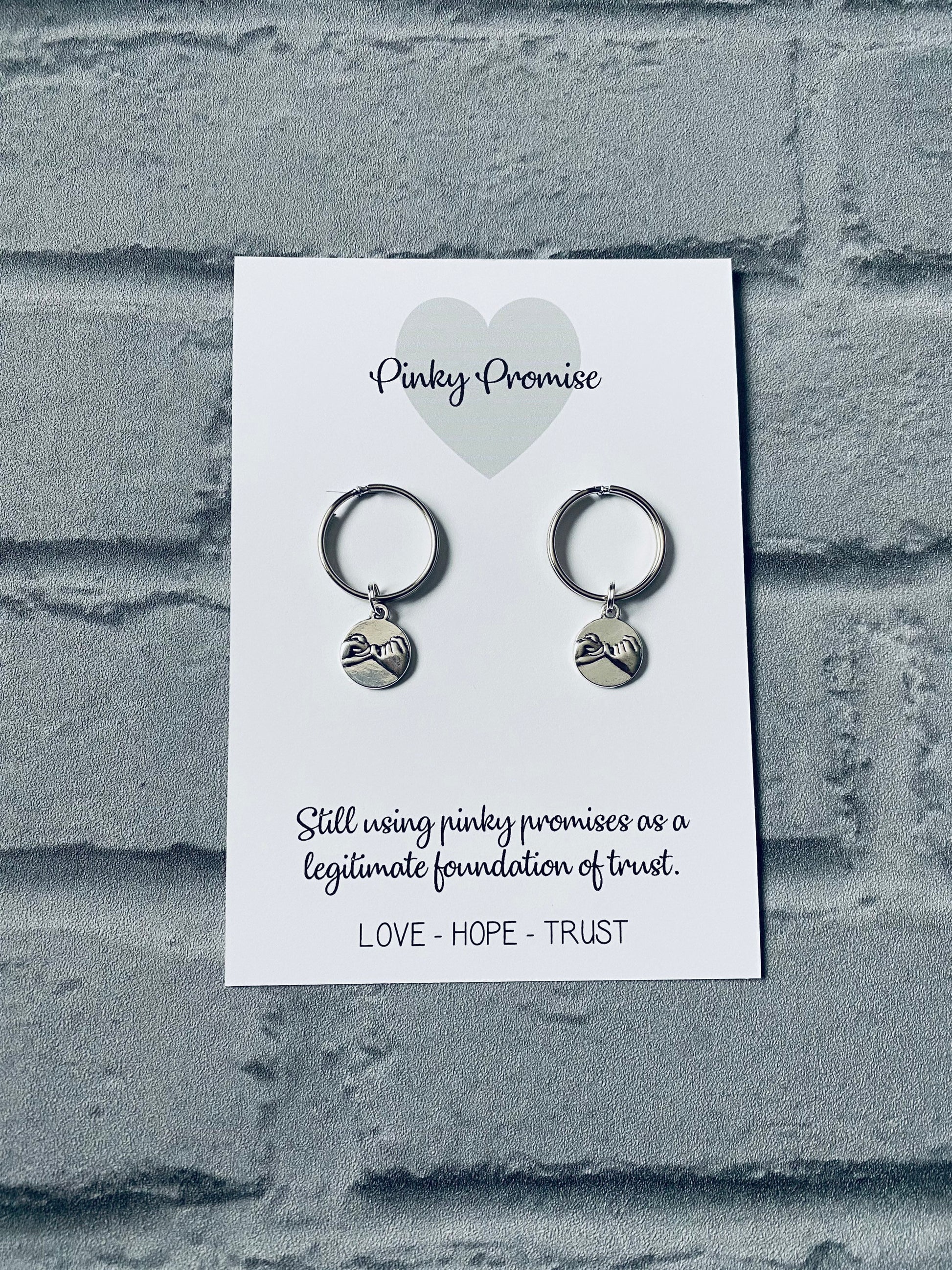 The double sided pinky promise charm is held onto a super strong 25mm split keyring.