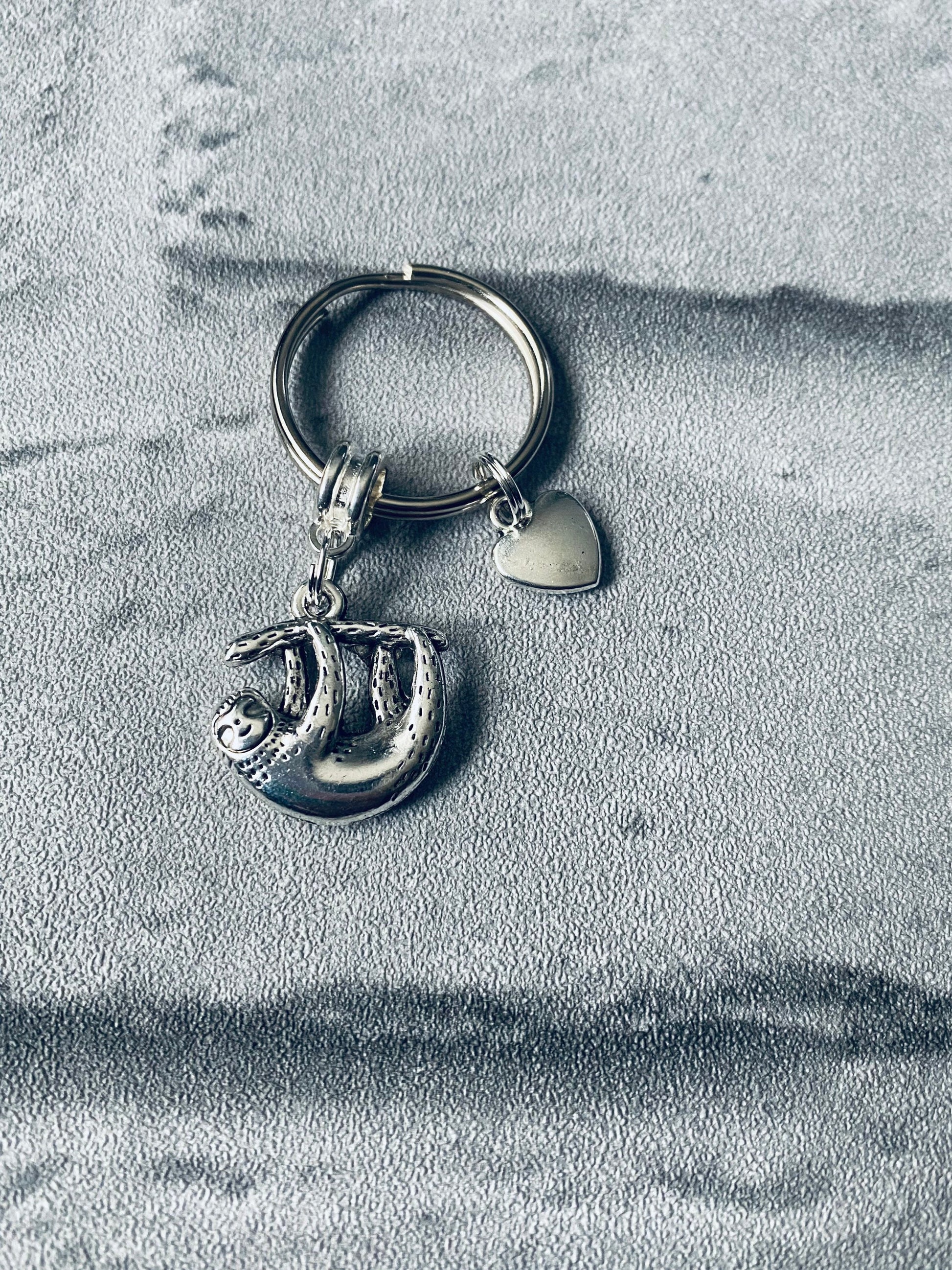 A beautiful sloth keyring with a small heart charm 💛